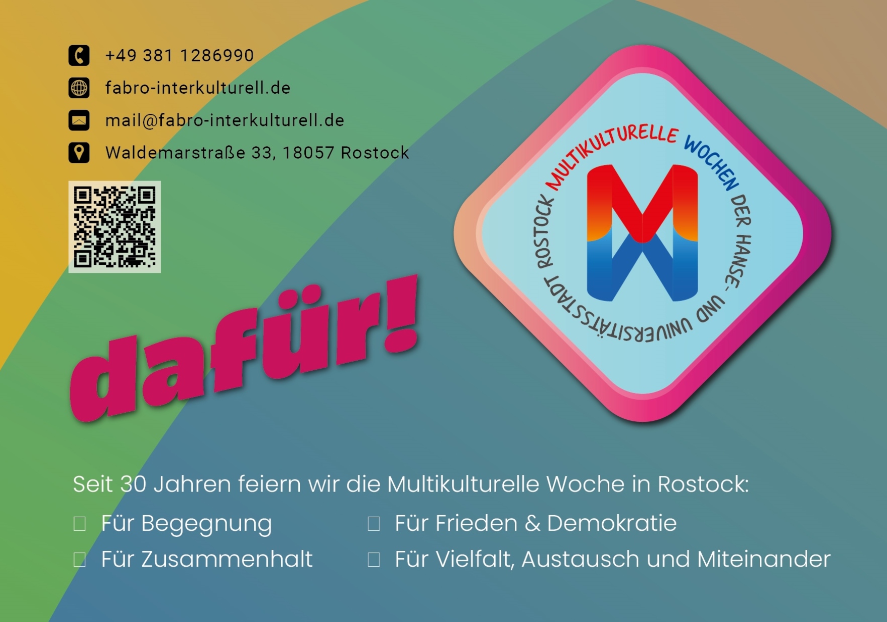 Die Multikulturellen Wochen der Hansestadt Rostock (MKW) finden alljährlich im Zeitraum zwischen August und Dezember statt. Sie sollen dazu beitragen, das Zusammenleben von Deutschen und MigrantInnen in unserer Stadt zu fördern. Dies geschieht insbesondere durch vielfältige kulturelle Veranstaltungen, die mit fremdem Kulturen und Lebensweisen vertraut machen wollen, um auf diese Weise Vorurteile abzubauen und Interesse zu wecken.